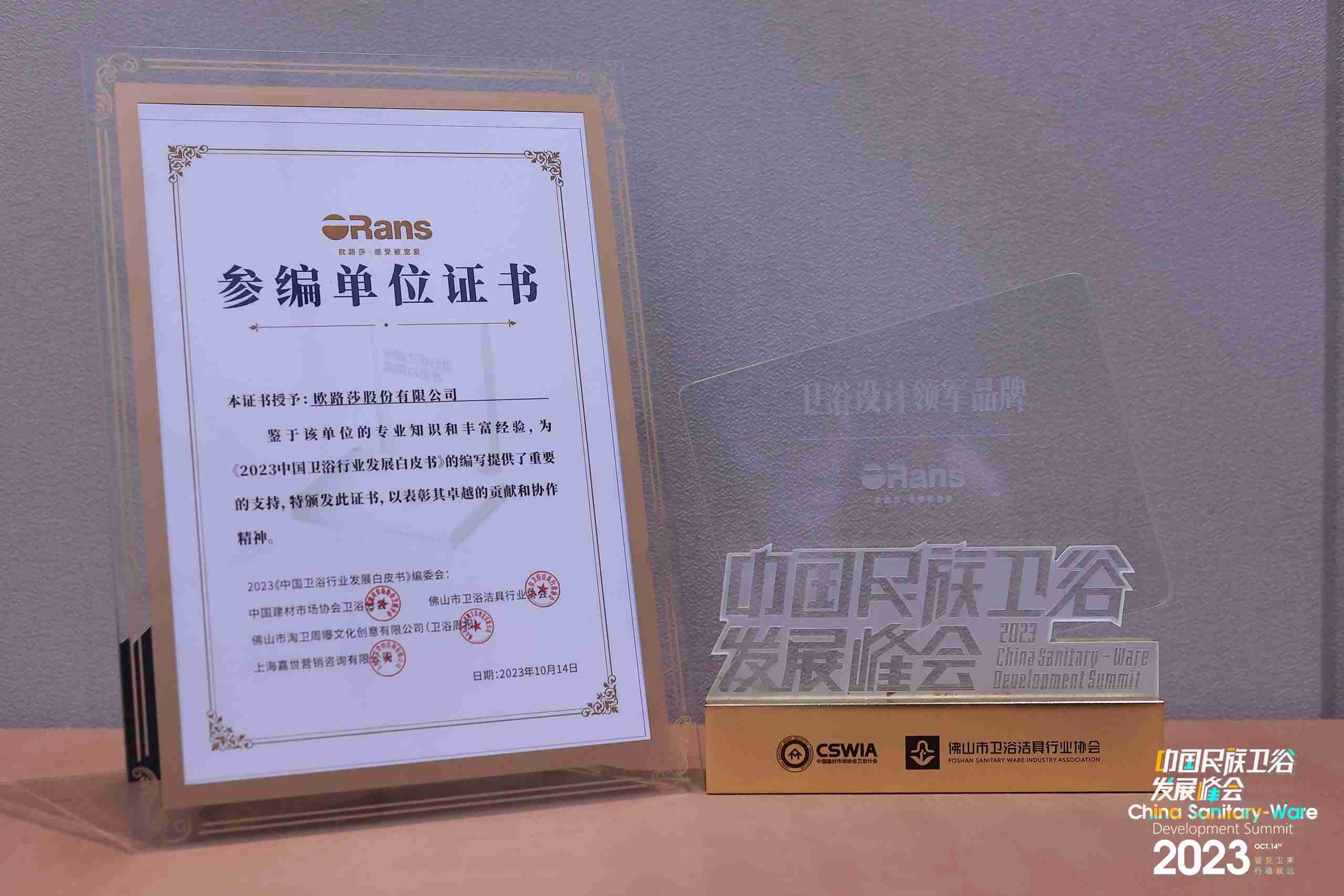 與此同時(shí),歐路莎不光關(guān)注自身發(fā)展,還積極參與推動(dòng)國(guó)內(nèi)衛(wèi)浴行業(yè)的發(fā)展。歐路莎衛(wèi)浴為編寫(xiě)《2023 中國(guó)衛(wèi)浴行業(yè)發(fā)展白皮書(shū)》提供了重要支持,并獲得了“參編單位證書(shū)”。這一舉措不僅體現(xiàn)了歐路莎衛(wèi)浴的專(zhuān)業(yè)實(shí)力,更是對(duì)國(guó)貨品牌的責(zé)任擔(dān)當(dāng)?shù)目隙ā?/span>