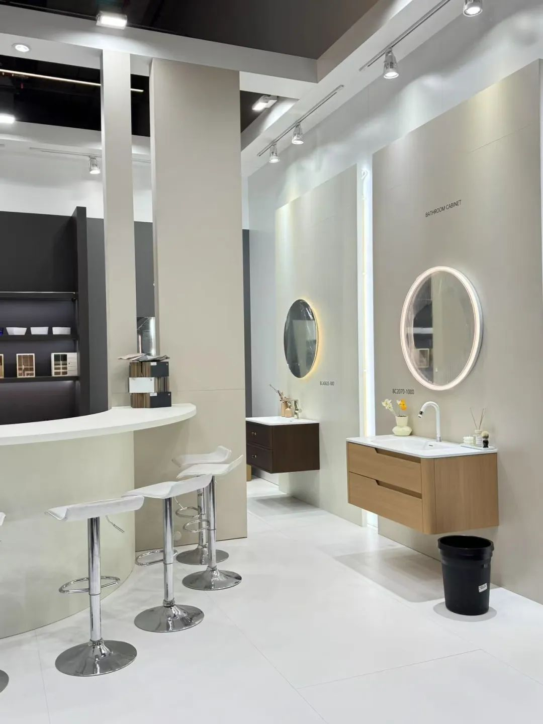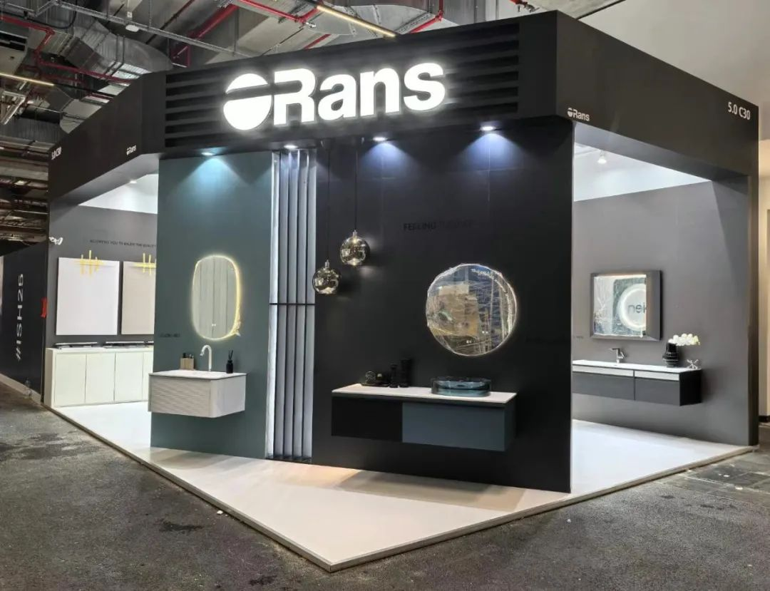 位于5.0,C30展位的歐路莎衛浴,秉承一貫的極簡主義設計理念,展館以經典的黑白灰為主色調,通過層次分明的空間布局與低碳環保的材質搭配,巧妙融合了科技與自然的和諧之美。