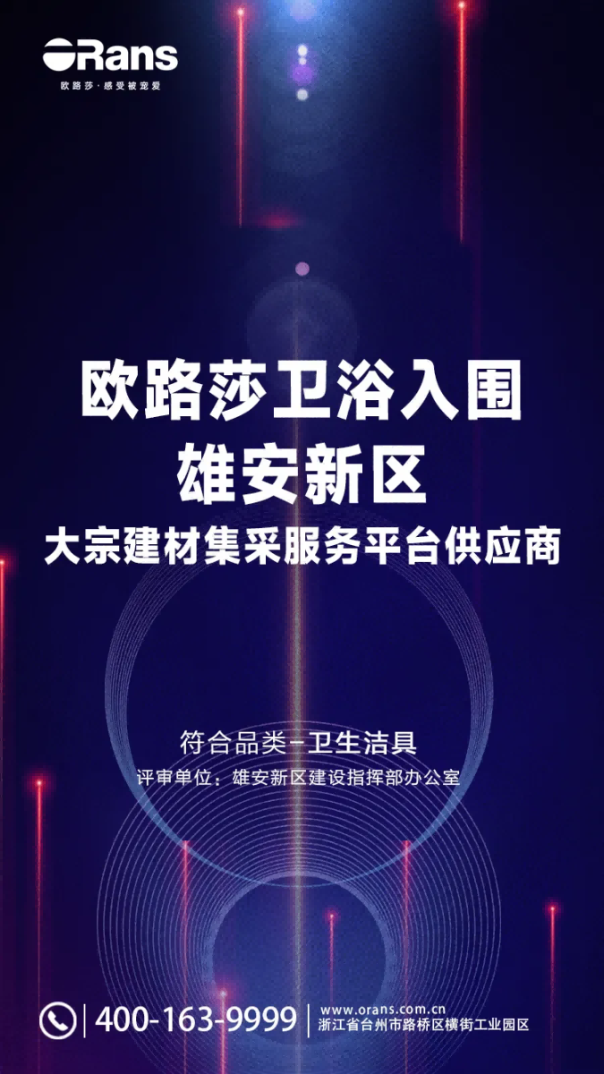 12月28日,河北省雄安新區(qū)建設(shè)指揮部發(fā)表有關(guān)于衛(wèi)生潔具等七個(gè)品類供應(yīng)商企業(yè)的綜合評(píng)估結(jié)果通報(bào),其中歐路莎衛(wèi)浴在衛(wèi)生潔具欄目榮獲優(yōu)良成績(jī),這是歐路莎在國家重點(diǎn)建設(shè)工程中獲得的又一重大成果。