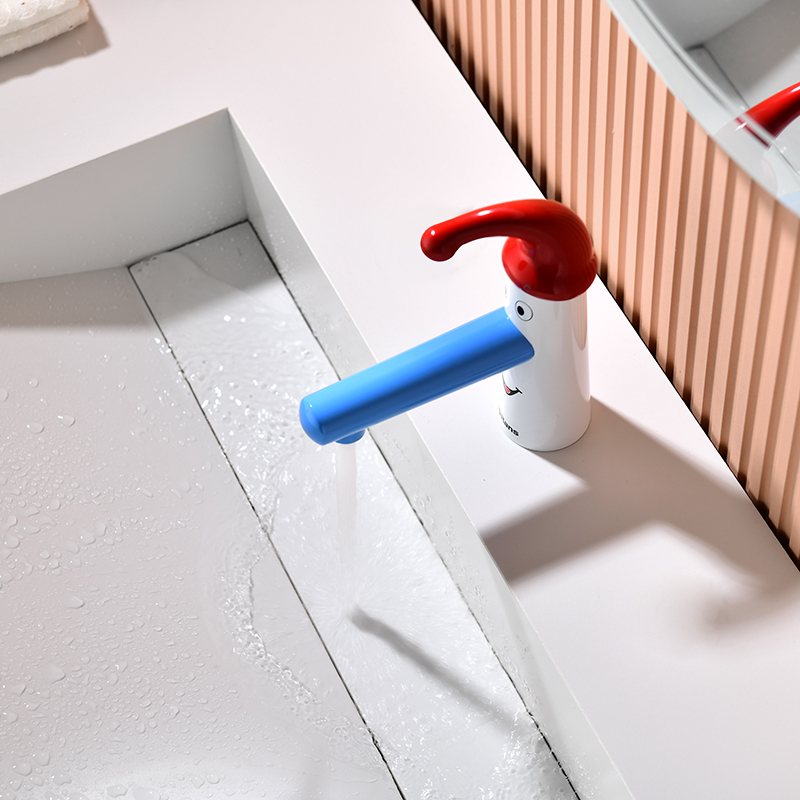 符合兒童人體工學(xué)設(shè)計,藍(lán)鼻子110cm加長出水口,微傾斜水流,自己洗手更輕松