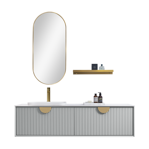 波紋線條元素給衛(wèi)浴空間增添了幾分靈動,與鎏金圓弧拉手巧妙搭配,盡顯優(yōu)雅時尚。