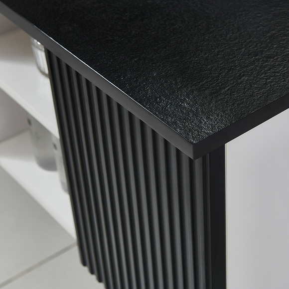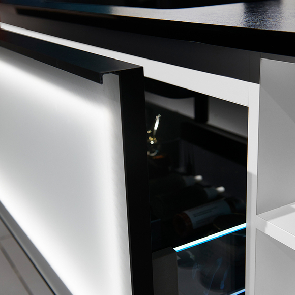主柜顏色:柜體啞光白,門板啞光黑,抽面啞黑鋁框玻璃帶燈